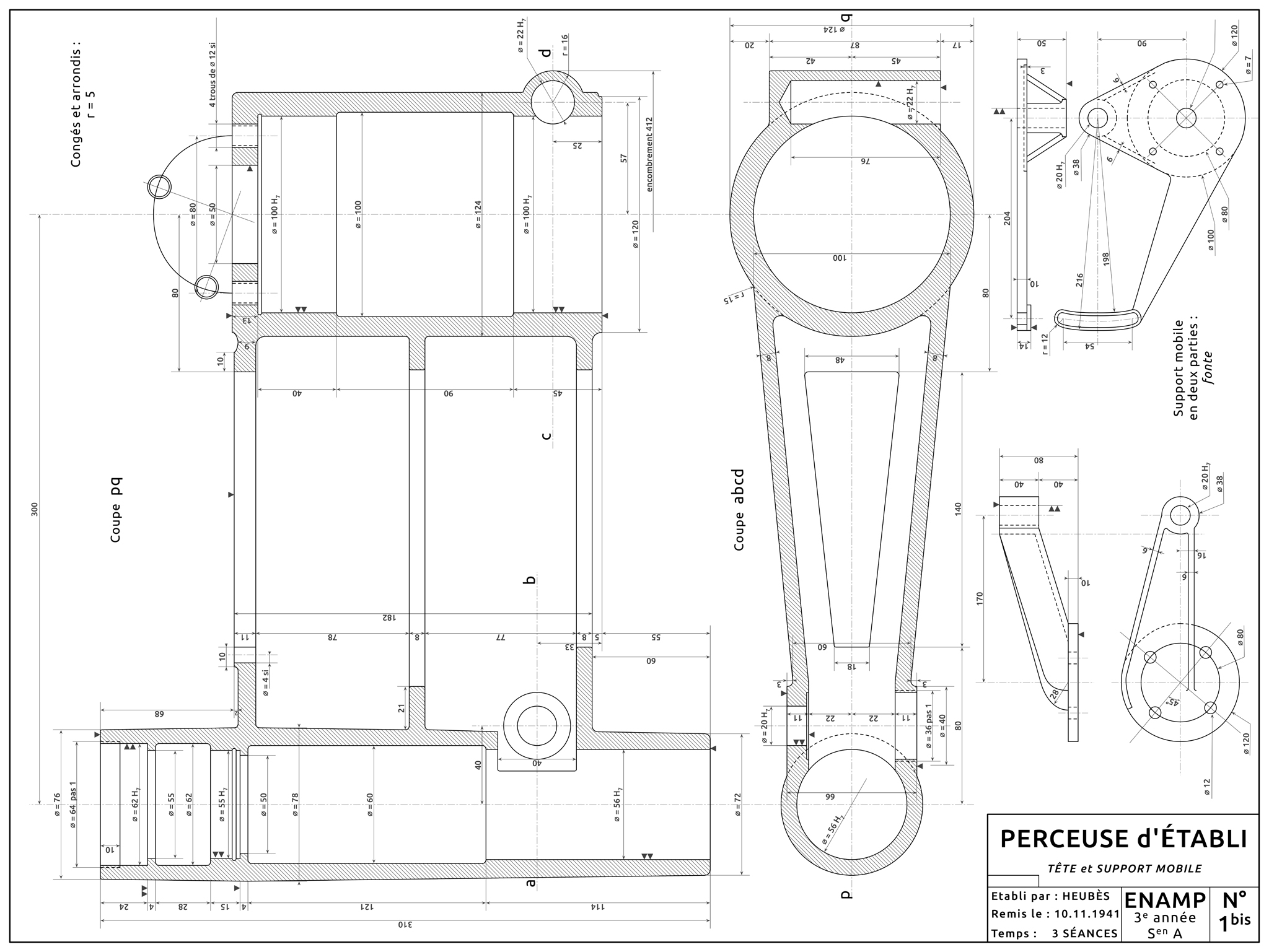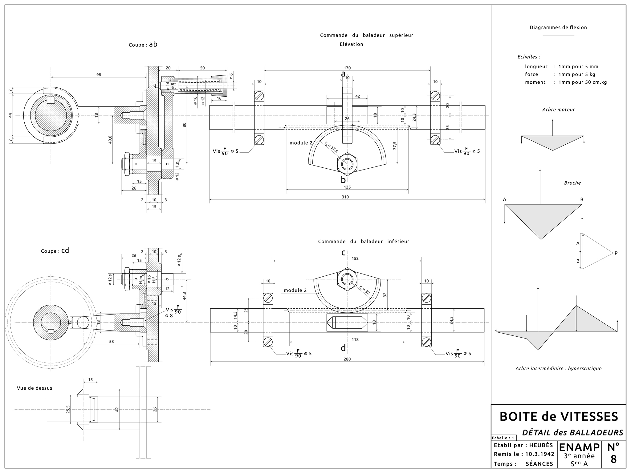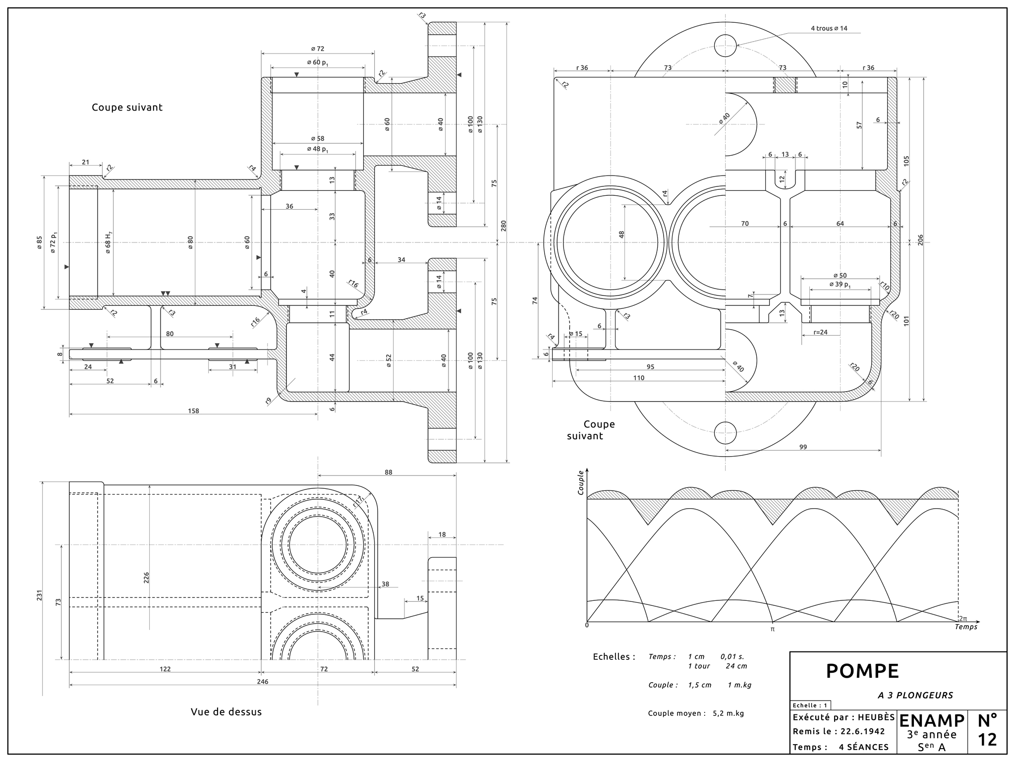Pendant ses études à l'ENAMP (École Nationale des Arts et Métiers de Paris) entre 1939 et 1942, mon grande père Claude Heubès a réalisé une quarantaine de dessins techniques à l'encre sur calque. J'ai entrepris en 2020 d'en reproduire quelques-uns au format numérique.